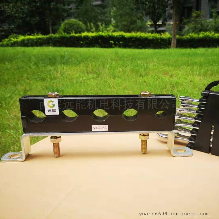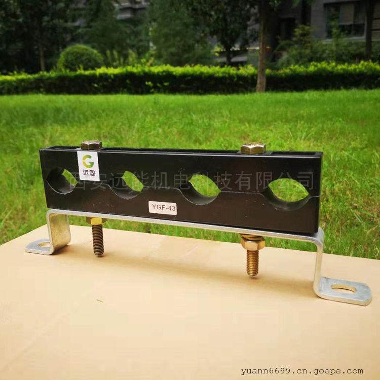 西安远能公司给预分支单芯电缆配用YGF四孔电缆固定夹具和五孔电缆固定夹具,材料均有绝缘性能优异的BMC(聚酯加玻璃纤维增强丝)材料模压而成,棕红色和黑色外观与电缆颜色搭配美观,材料耐用,防水防腐防涡流,是房地产电井用户和预分支电缆使用者的好搭档。一副电缆固定夹均由上下两部分组成,上下用两根镀锌螺栓固定,电缆固定夹螺栓标配平垫、弹垫及螺帽,安装很便捷。
